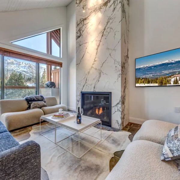 Explore the Casabella Crescent renovation in Whistler featuring Laminum tile slabs, custom millwork, updated bathrooms, a bunk room & more.